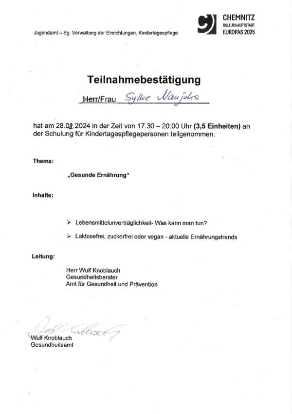 Zertifizierte Kindertagespflegestelle der Stadt Chemnitz